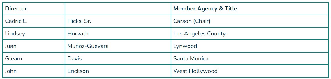 | Lindsey Horvath (Vice Chair) | Los Angeles County |
